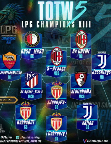 LPGThe LeagueThe TeamTOTWTOTW 5 LPG CHAMPIONS August 9, 2025 ???? Muro Humano: l Cobreezy l Domina la Semana 5...